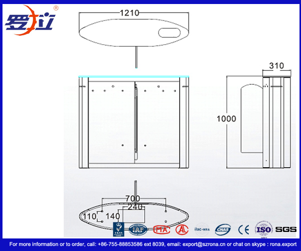 -> Operation model: Both direction can be set as controlled mode, free mode or disable model, two or one direction can be controlled by switch- button or access controller. (Free model means automatic open by infrared beam detecting, controlled model means use valid access controller signal to open, disable model means forbidding anyone pass thru).